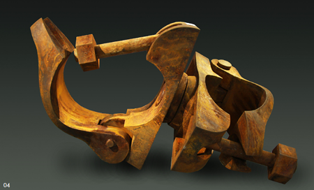在我看来,金属雕塑是艺术家五种力量或才能的结果。即雕塑造型的艺术能力、传统手工艺的动手能力、现代金属加工技术的运用能力、对金属材料特性的理解与感悟能力、从观念形态进行金属材料结构组合的能力。其中,对材料的感受能力以及根据材料特性进行抽象性的空间思维与造型能力是关键的基础要素。雕塑家在创作加工的过程中,既是辛勤劳作的工人,也是具备艺术感悟和想象力的艺术家,他尊重材料的特性即尊重金属材料的物理特性,但也尊重自己在创作过程中的艺术想象和灵感突现的偶发创意。他既尊重艺术作品的自在性,也尊重自己的直观感受,将金属雕塑的创作过程转换成为一个充满创造性的快乐的人生体验。通过对金属材料的重新组合,完成对现代工业社会与消费时代的物质性的阐释。