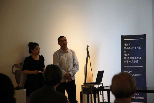 9月24日下午6时,第五届韩•中现代雕塑交流展在韩国首尔韩国美术馆开幕。参加本次展览的有103位韩国雕塑家及14位中国雕塑家。代表中国参展的是霍波洋、张克端、陈克、马强、魏二强、蒋铁俪、王志刚、徐悦翔、王立伟、朱勇、张若愚、罗幻、张勇、郭航等。展览开幕前,韩国雕刻家协会安排了一个小型的讲座,中韩各两位艺术家就“雕刻:与关系面对面”的主题作了简短的发言。韩国檀国大学教授金赫洙介绍了世界各国的大型陶瓷雕塑;弘益大学教授金范洙以自己的创作实践讲述了数码视觉对表现悲剧性场面的力量和处理方式。霍波洋总结了中国的美院从2008至2013年雕塑专业本科毕业创作的特点,从单一的写实具象慢慢走向更为开放的方向;张克端则以自己从80年代以来的雕塑作品向我们呈现出中国自改革开放以来雕塑创作实践发生的转变。